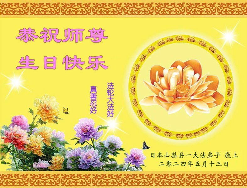 日本山梨县一大法弟子恭祝师尊生日快乐!