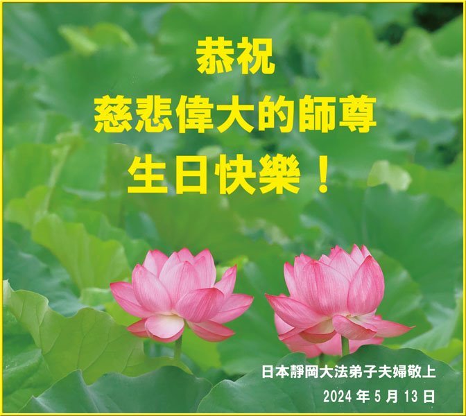 日本大阪一大法弟子和大法小弟子敬上 二零二四年五月十日 日本大法弟子恭祝慈悲伟大的师尊华诞!