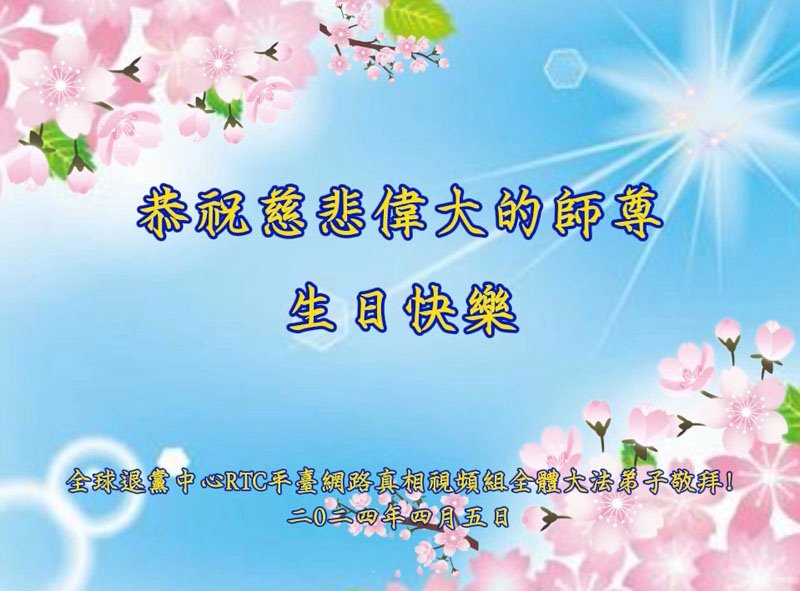 全球.退:党!中心RTC平台网路真相组全体大法弟子恭祝慈悲伟大的师尊生日快乐!