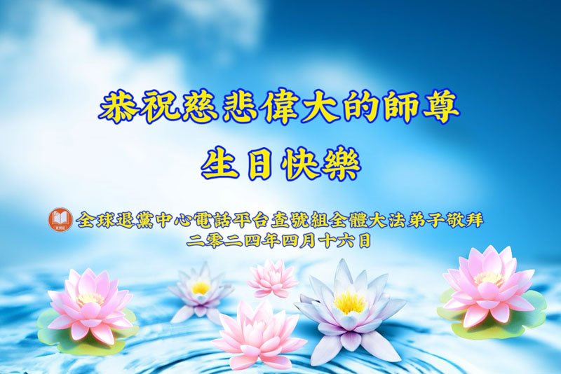 全球.退:党!中心电话组RTC平台全体大法弟子恭祝慈悲伟大的师尊生日快乐!