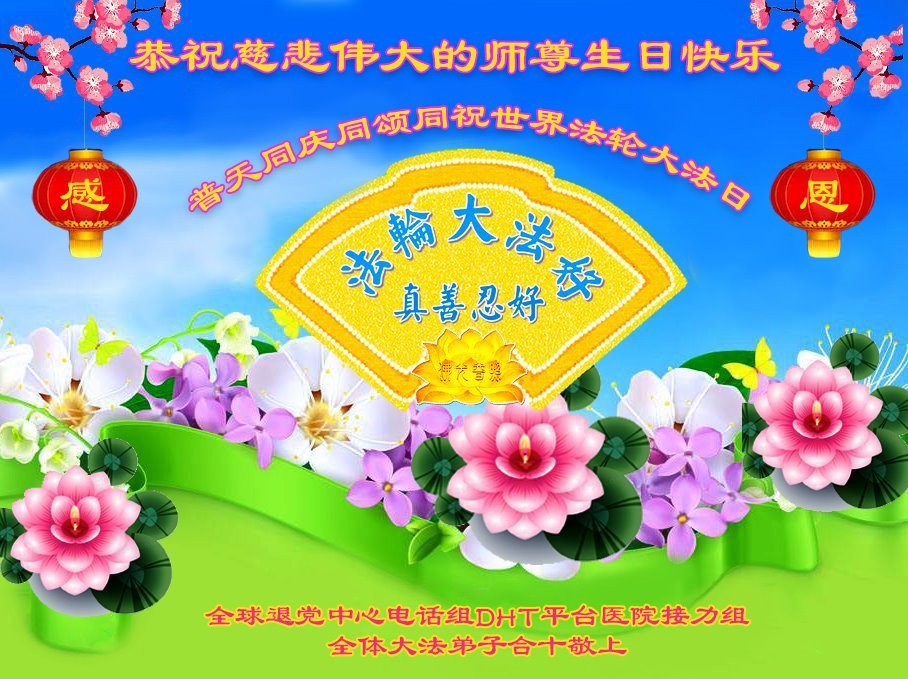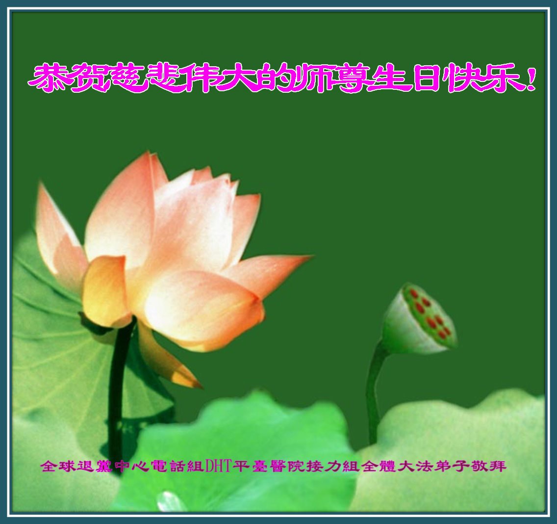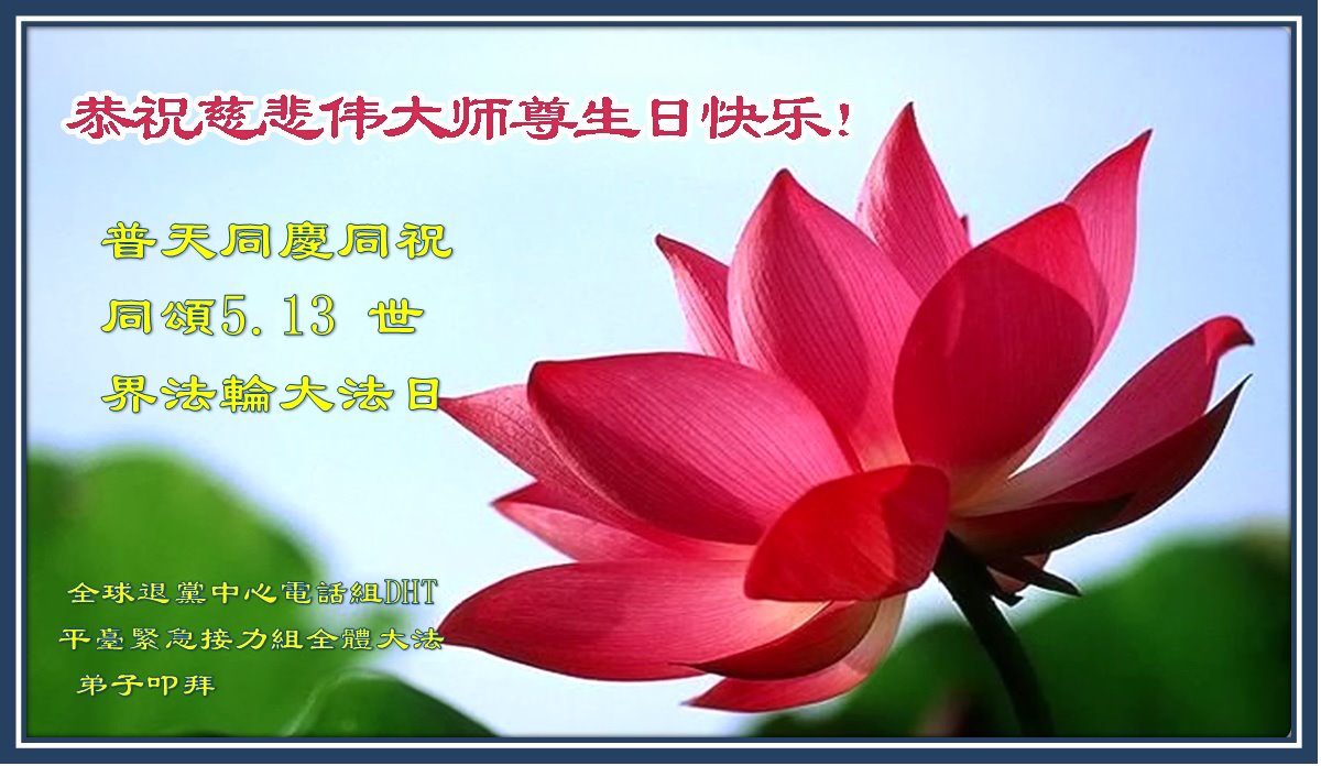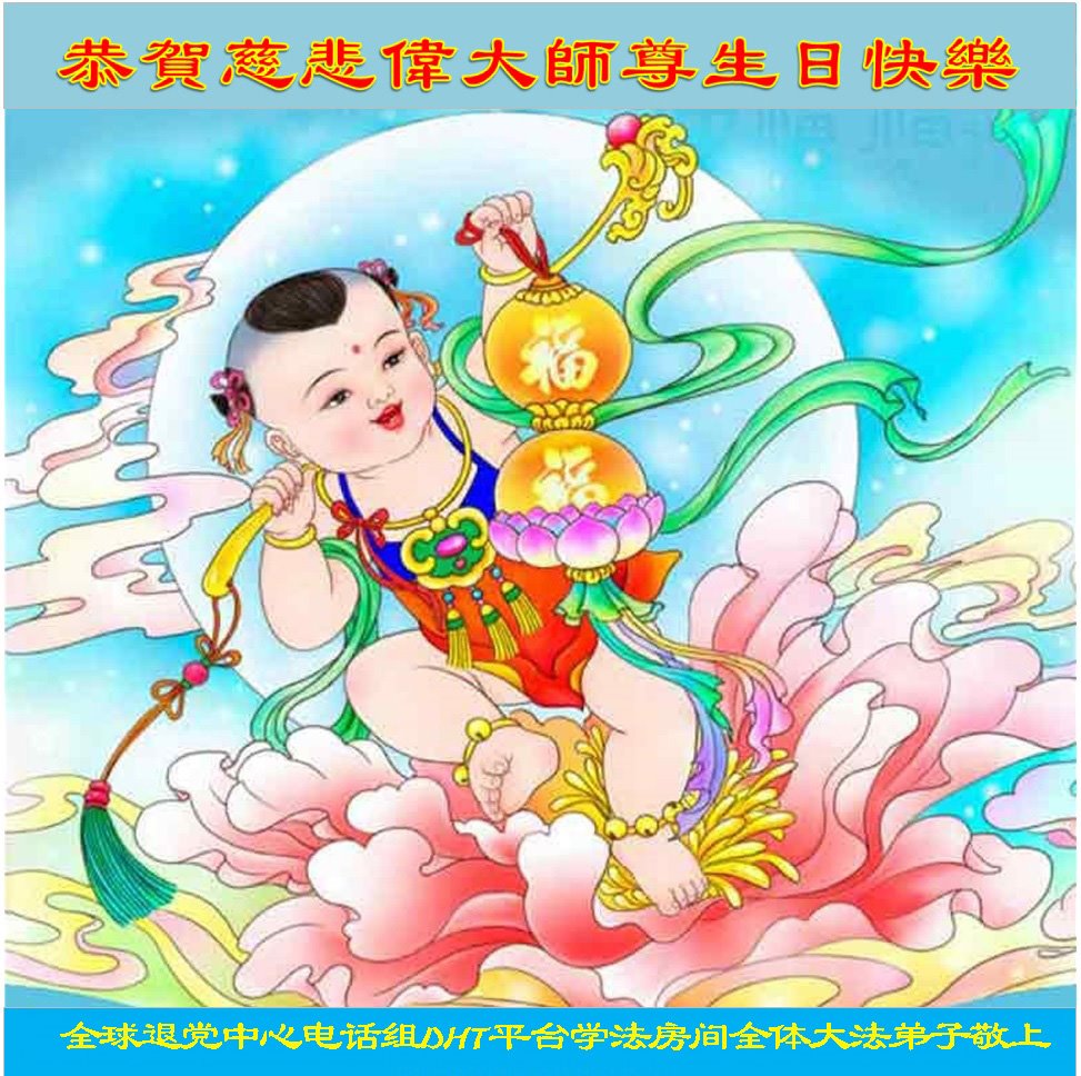 恭祝慈悲伟大的师生日快乐! 全球.退:党!中心电话组DHT平台紧急接力组全体大法弟子敬上 全球.退:党!中心RTC平台学法组全体大法弟子恭祝慈悲伟大的师尊生日快乐!