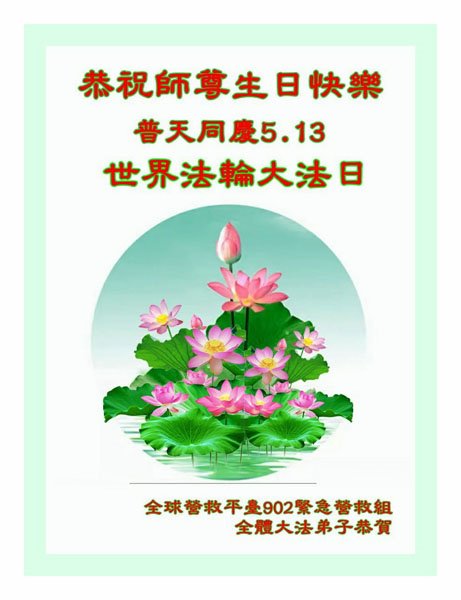 全球营救平台902紧急营救组全体大法弟子恭祝师尊生日快乐!普天同庆世界法轮大法日!