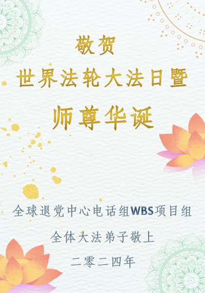 全球.退:党!中心电话组WBS项目组敬贺世界法轮大法日暨师尊华诞!