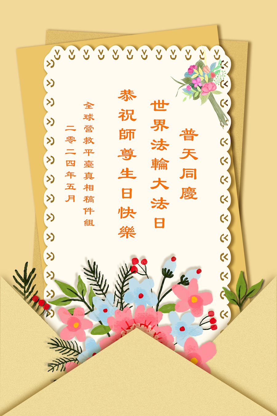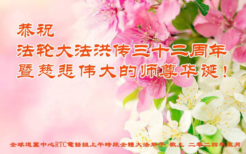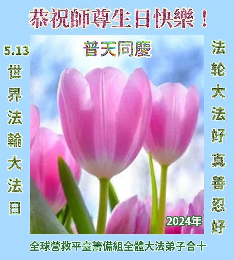 全球营救学法组北京时间中午段大法弟子敬上 二零二四年五月九日 全球营救平台彩信组、短信组全体大法弟子恭祝师尊生日快乐!