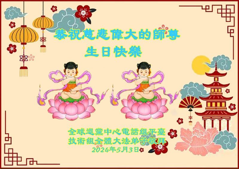 全球.退:党!中心电话组平台技术组全体大法弟子恭祝师尊生日快乐!