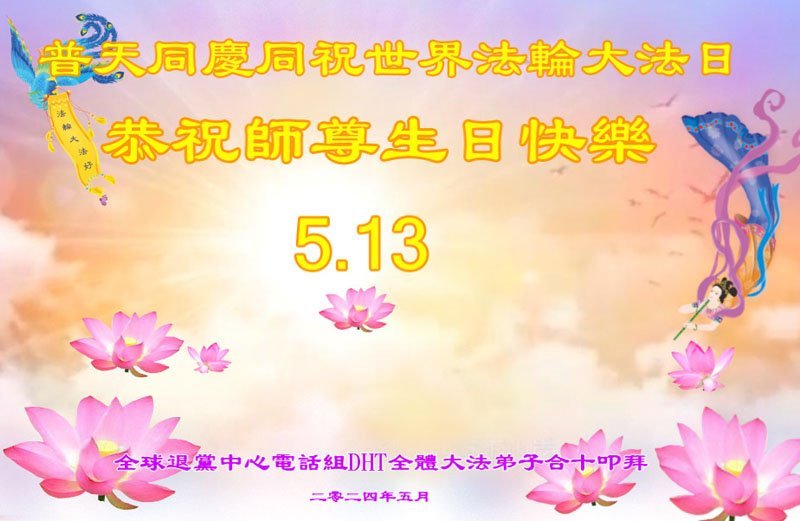 【明慧网二零二四年五月十三日】 退!党!网站大法弟子欢庆世界法轮大法日!恭祝师尊生日快乐!