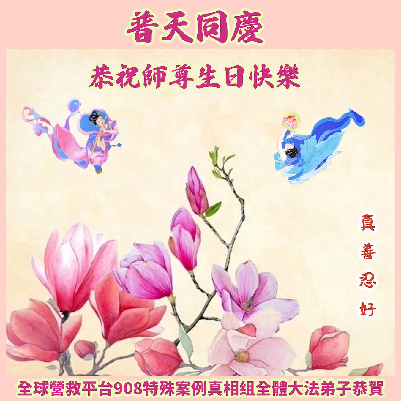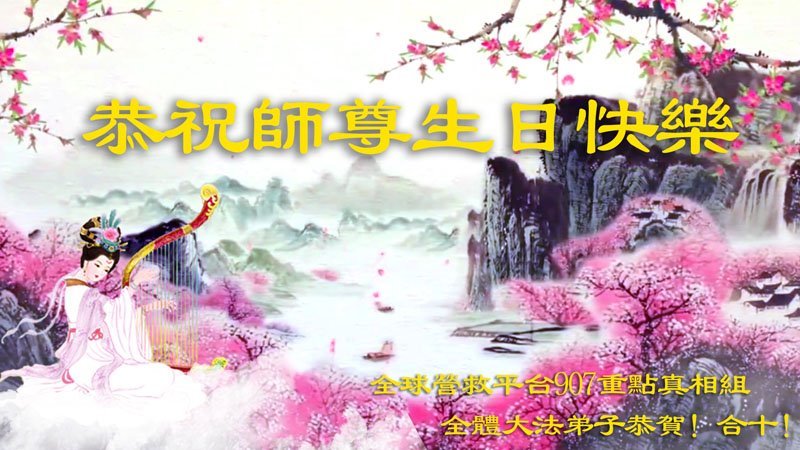 感恩师尊慈悲救度!弟子们会学法好,做好三件事,多救人,圆满随师还。 全球营救平台907重点真相组全体大法弟子恭祝师尊生日快乐!