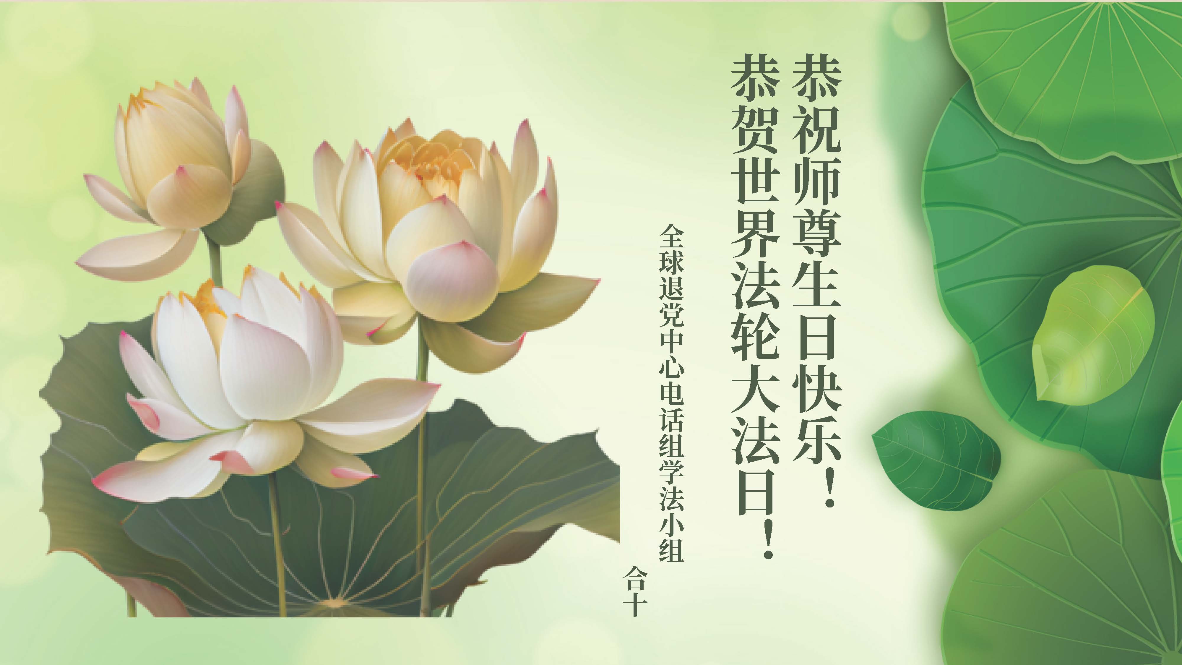 全球.退:党!中⼼电话组学法小组大法弟子恭贺世界法轮大法日!恭祝师尊生日快乐!