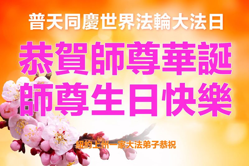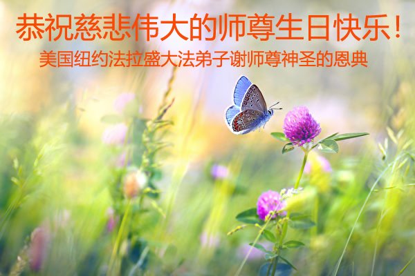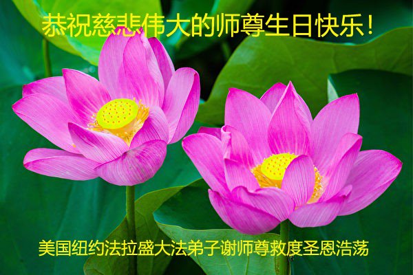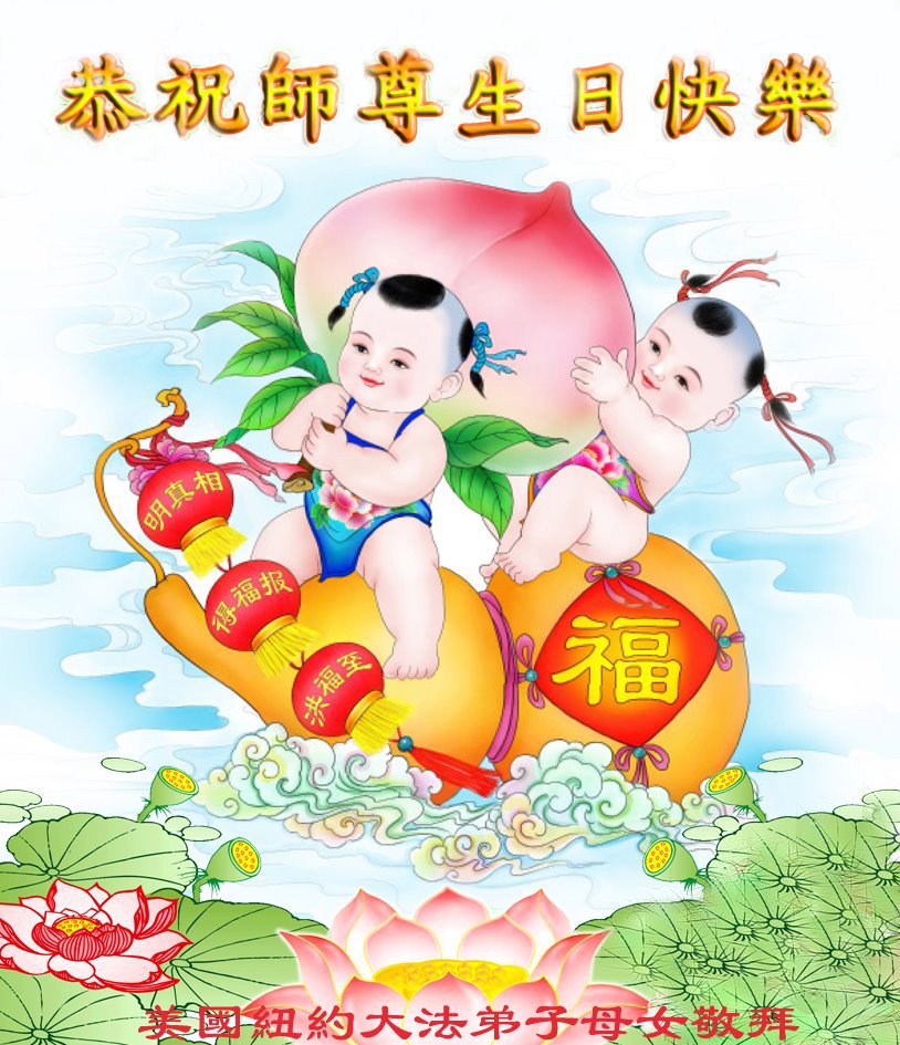 感恩师尊救度!圣恩浩荡!美国纽约法拉盛大法弟子敬上 纽约一大法弟子夫妻及大陆家人同修恭祝师尊生日快乐!