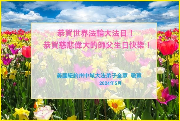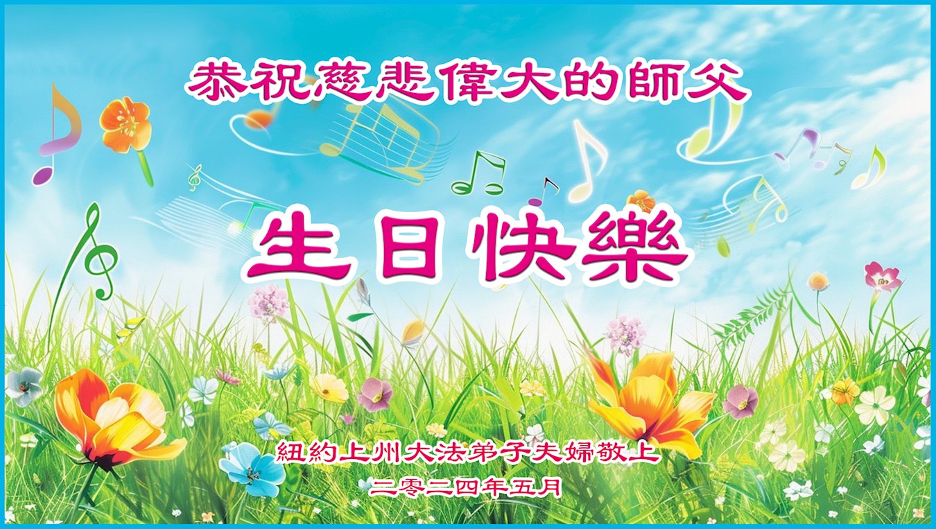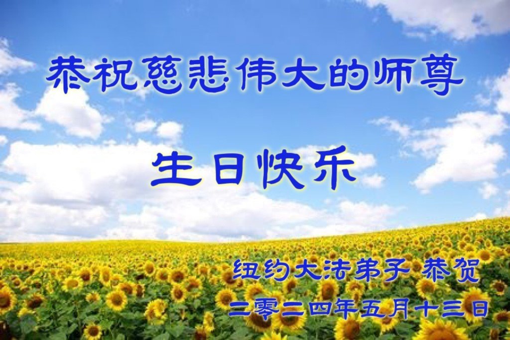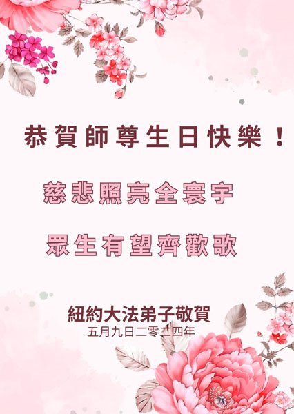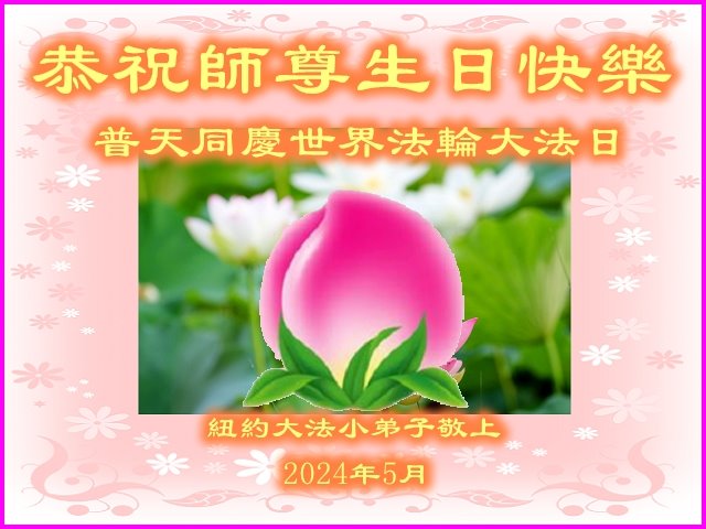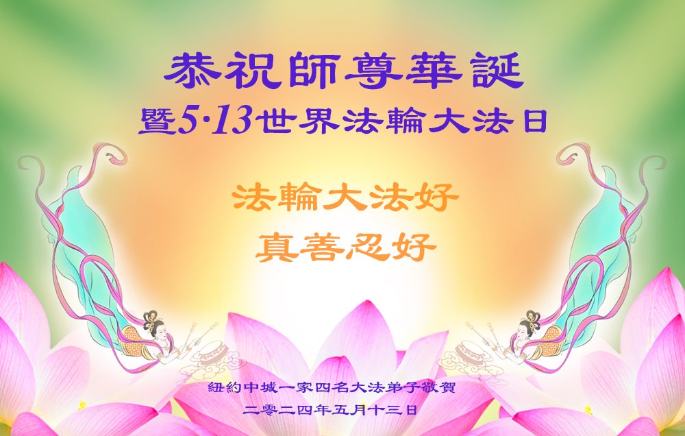 美国纽约州中城大法弟子全家敬上 2024年5月 纽约中城一媒体大法弟子恭祝慈悲伟大的师父生日快乐!