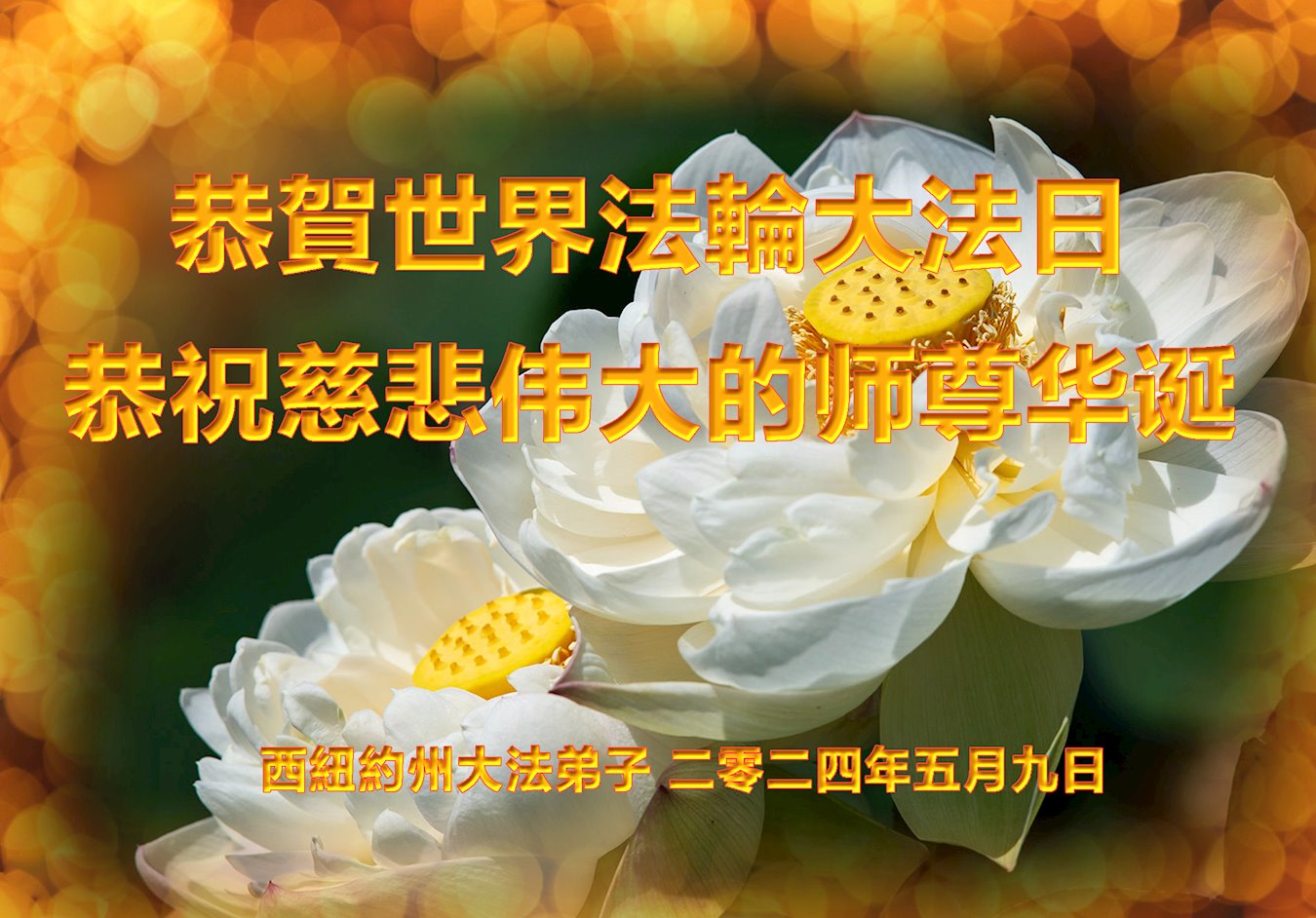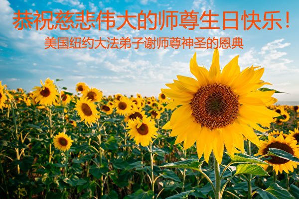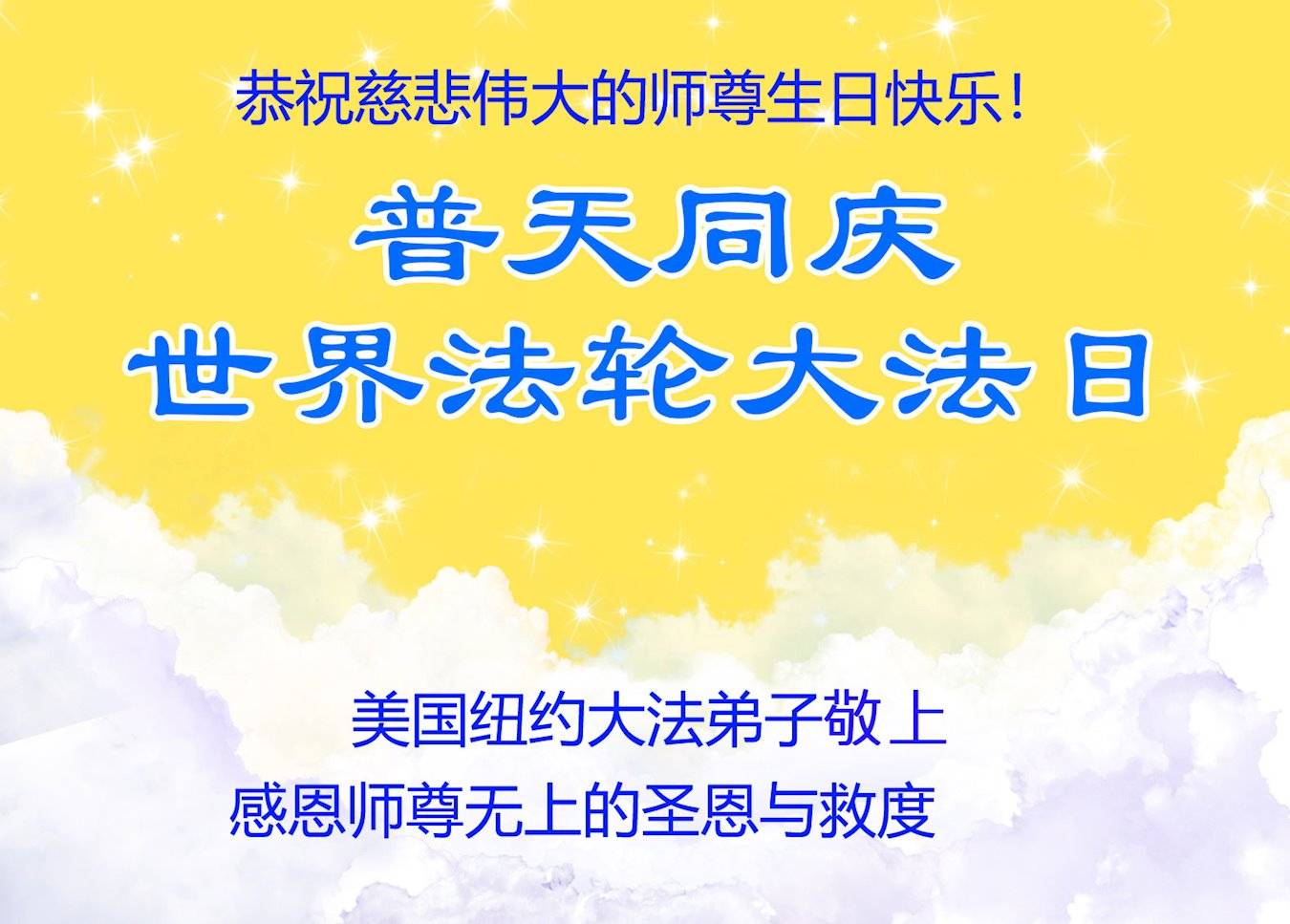 感恩师尊无量的慈悲与救度!感恩师尊的一路看护走到今天,幸运能成为一名正法时期的大法弟子! 纽约大法弟子恭祝师尊华诞!欢庆世界法轮大法日!
