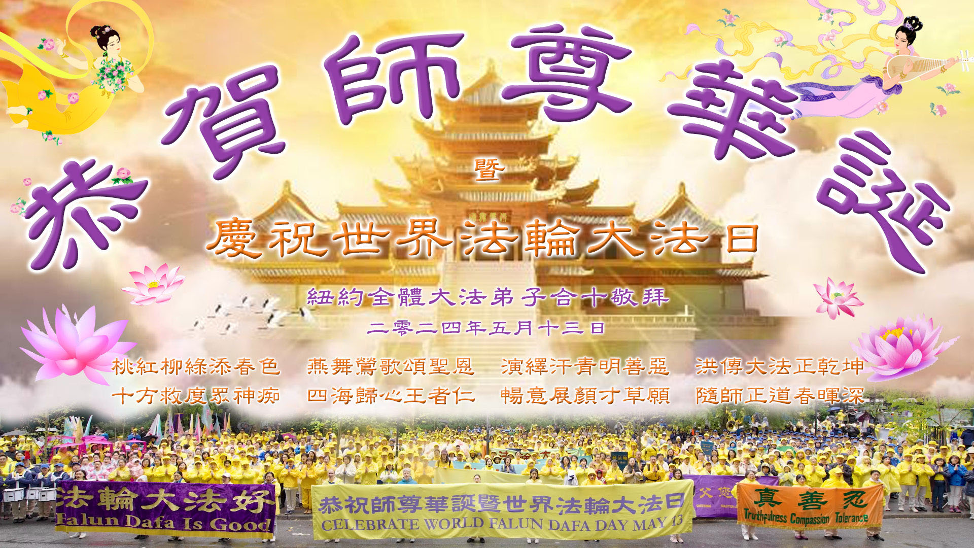 【明慧网二零二四年五月十三日】 美国纽约大法弟子恭祝师尊生日快乐!庆祝世界法轮大法日!