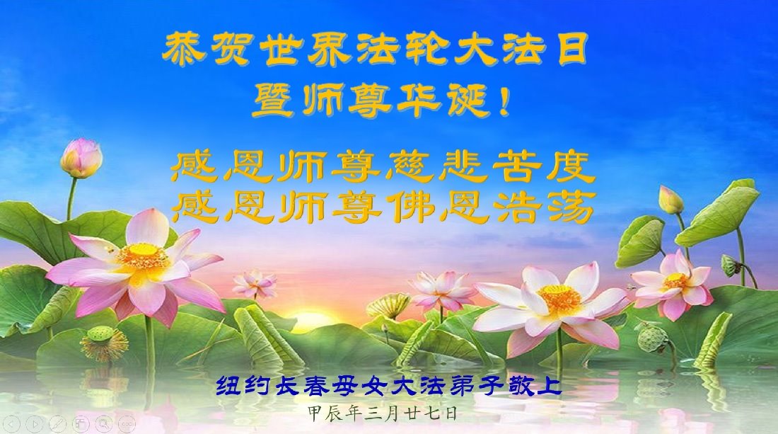 居住美国纽约的长春大法弟子恭祝慈悲伟大的师尊生日快乐!庆祝世界法轮大法日!