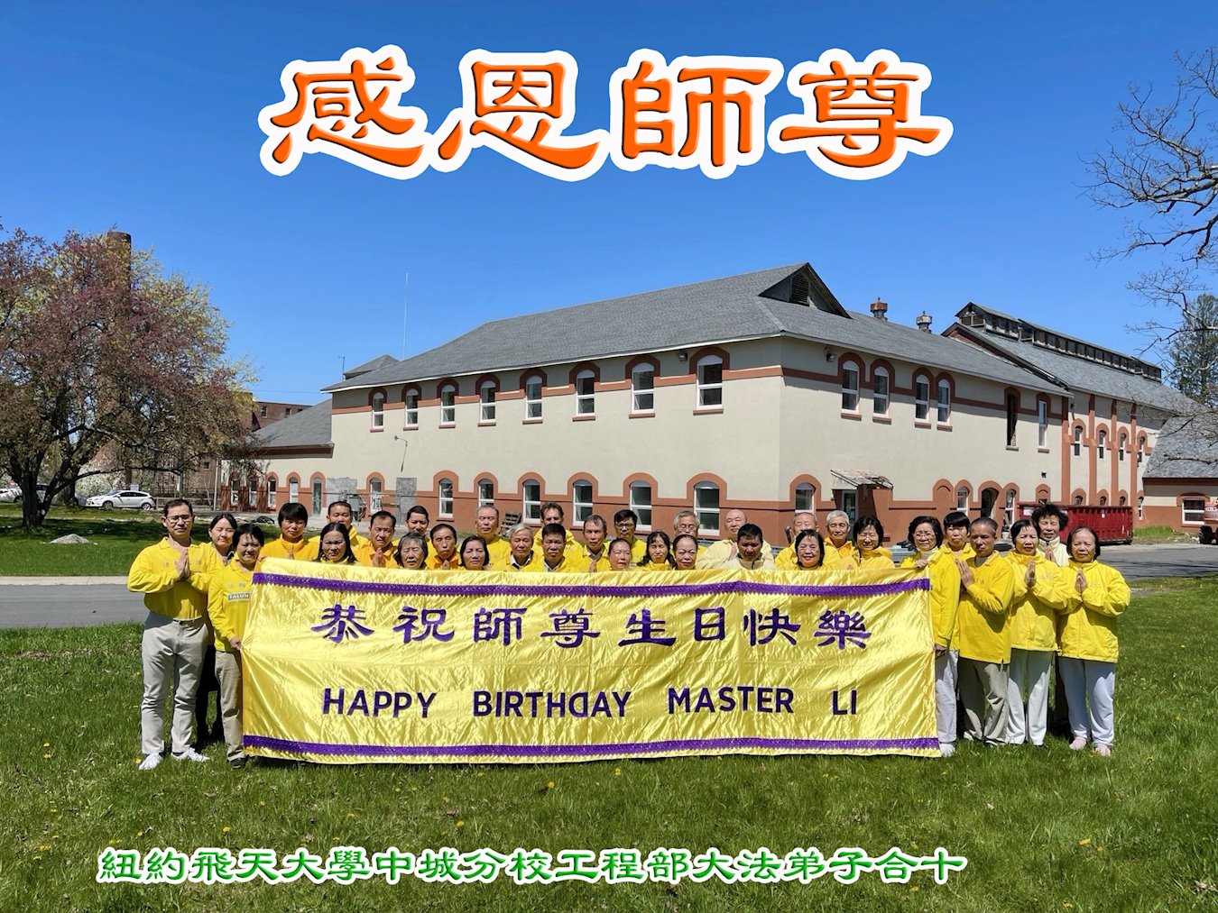 纽约飞天大学中城分校工程部全体大法弟子恭祝慈悲伟大的师尊生日快乐!