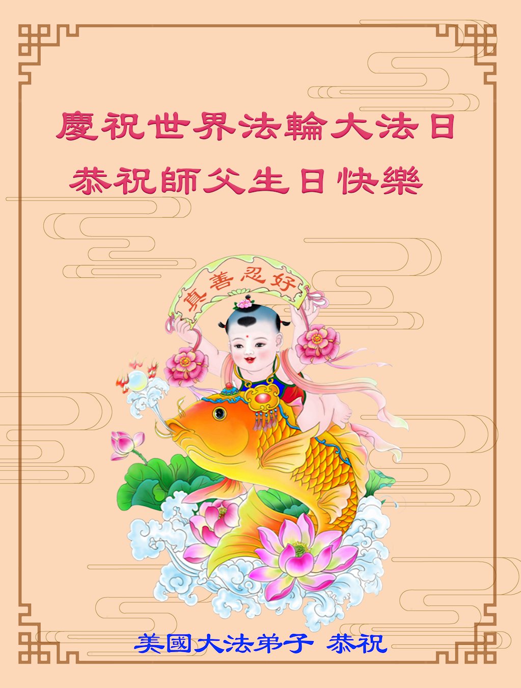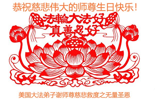 恭祝慈悲伟大的师尊生日快乐! 美国一大法弟子恭祝师尊生日快乐!恭贺世界法轮大法日!