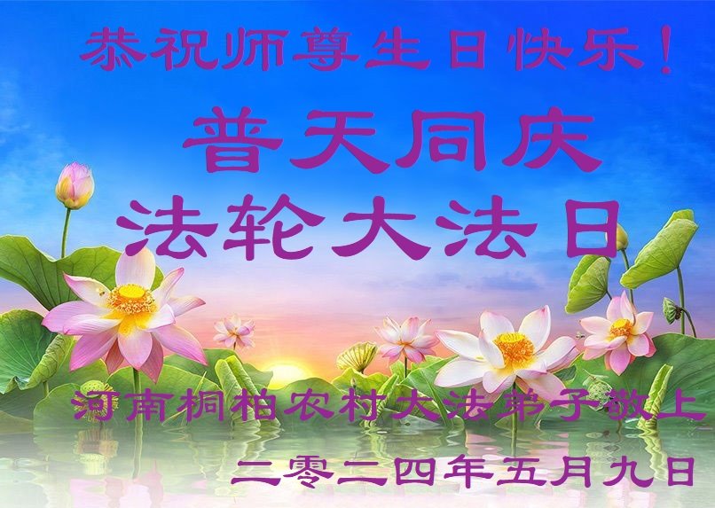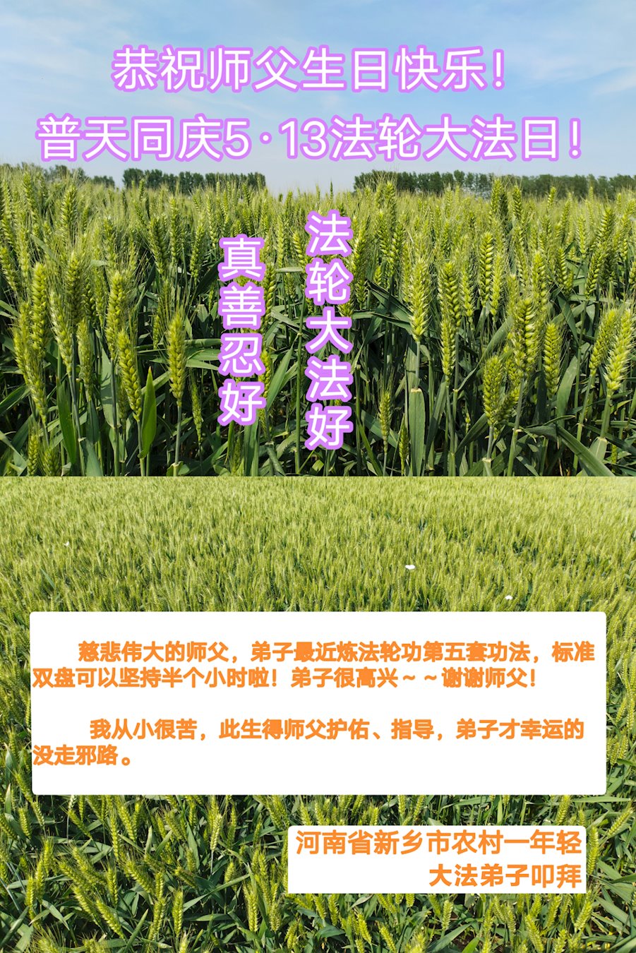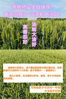 【明慧网二零二四年五月十四日】 河南省新乡市一农村大法弟子恭祝师父生日快乐!恭贺世界法轮大法日!