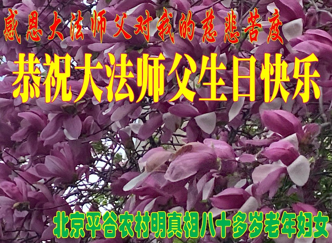 弟子永远不忘师父您的慈悲救度、给我延续来到生命;弟子不会再让师父为我们操心,做好三件事,以报答师父的慈悲苦度。弟子想念师父,恭祝师父生日快乐! 四川峨眉山市一乡村大法弟子敬上 甲辰年四月初一 北京平谷农村一明真相八十多岁老年妇女恭祝大法师父生日快乐!