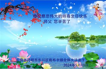 云南省昆明大法弟子恭祝慈悲伟大的师尊生日快乐!