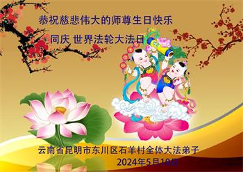云南宜良全体大法弟子恭贺世界法轮大法日!恭祝师父生日快乐!