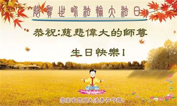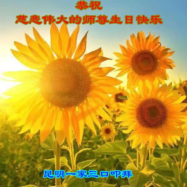 感谢师尊慈悲救度!普天同庆世界法轮大法日!恭祝师尊生日快乐! 临沧市全体大法弟子敬上 云南省昆明市一家大法弟子庆贺世界法轮大法日!恭祝师父华诞!
