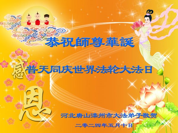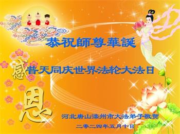 河北省唐山滦州市大法弟子恭贺第二十五届世界法轮大法日!恭贺法轮大法洪传三十二周年!恭祝慈悲伟大的师尊生日快乐!感恩师尊慈悲救度!