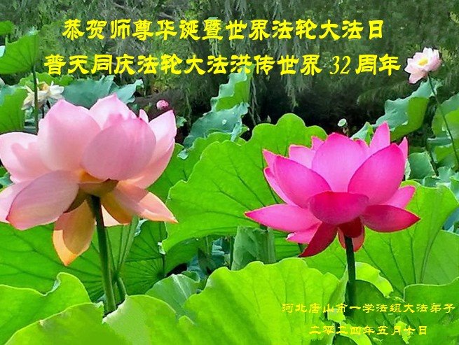 河北唐山市一学法组大法弟子恭贺师尊华诞暨法轮大法日!普天同庆法轮大法洪传世界32周年!