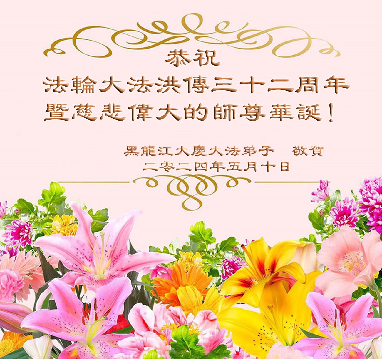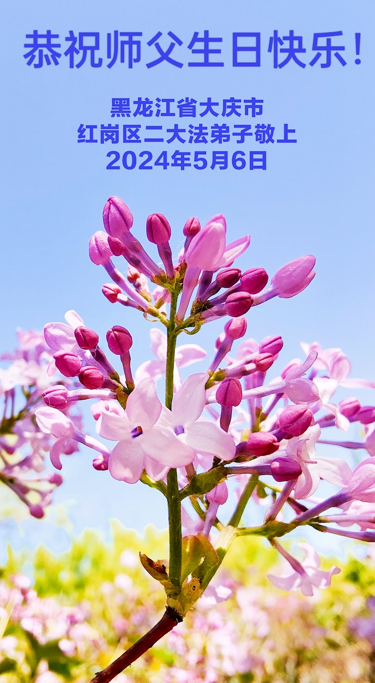 黑龙江省让胡路创业城一夫妻大法弟子敬上 二零二四年五月九日 大庆大法弟子恭祝师尊生日快乐!