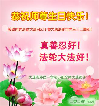 辽宁省大连沙区一学法小组全体大法弟子恭祝师尊生日快乐!