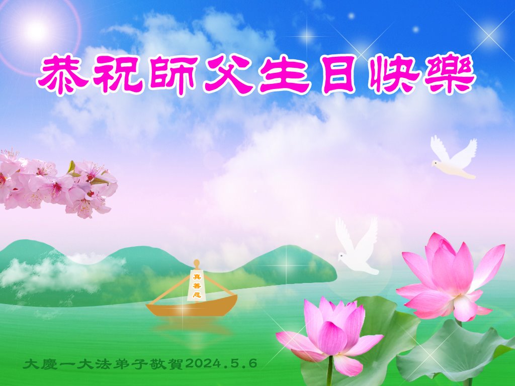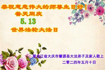 【明慧网二零二四年五月十四日】 黑龙江大庆一学法小组大法弟子恭祝师尊生日快乐!