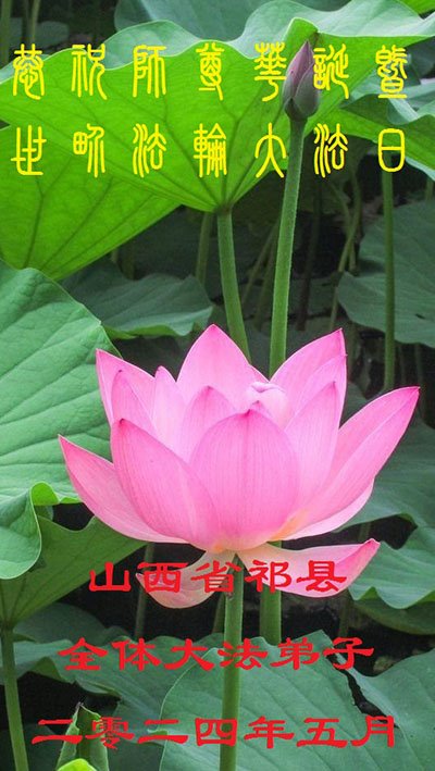 迎来了又一年的法轮大法日,恭祝师父生日快乐!认真背法,做好“三件事”。谢谢师父! 山西临汾尧都区全体大法弟子恭祝师父生日快乐!恭贺世界法轮大法日!