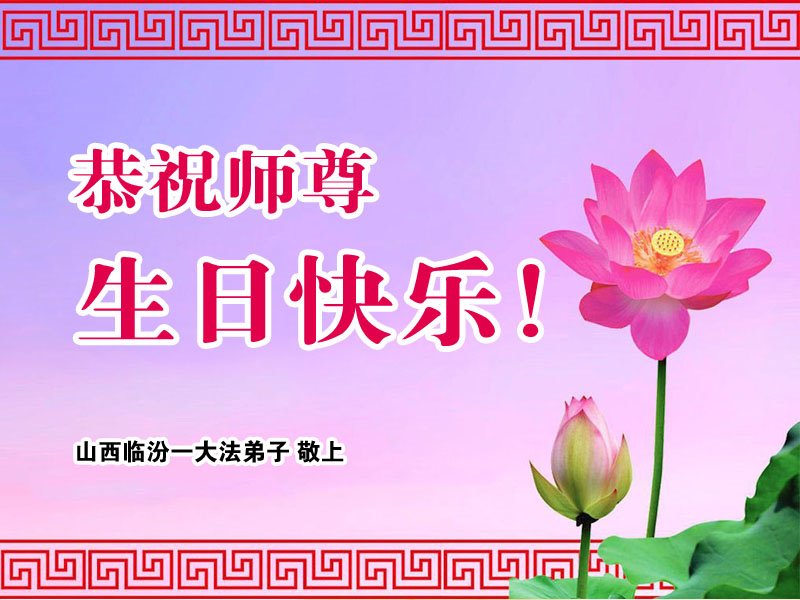 山西太原大法弟子恭祝师父生日快乐!感恩师父慈悲苦度,弟子们努力精進,做合格的大法弟子,跟师父回家! 山西太原大法弟子敬上 山西省临汾市一学法小组大法弟子恭祝师尊生日快乐!