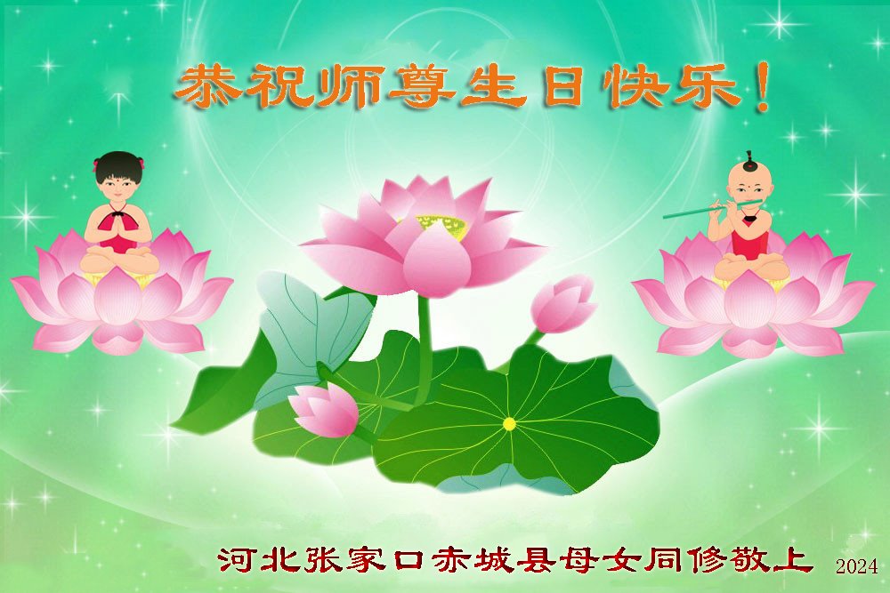 河北张家口赤城县母女同修恭祝师尊生日快乐!