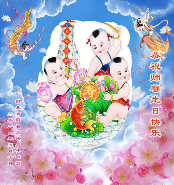 【明慧网二零二四年五月十四日】 河北省张家口市蔚县一学法小组大法弟子恭祝师尊生日快乐!