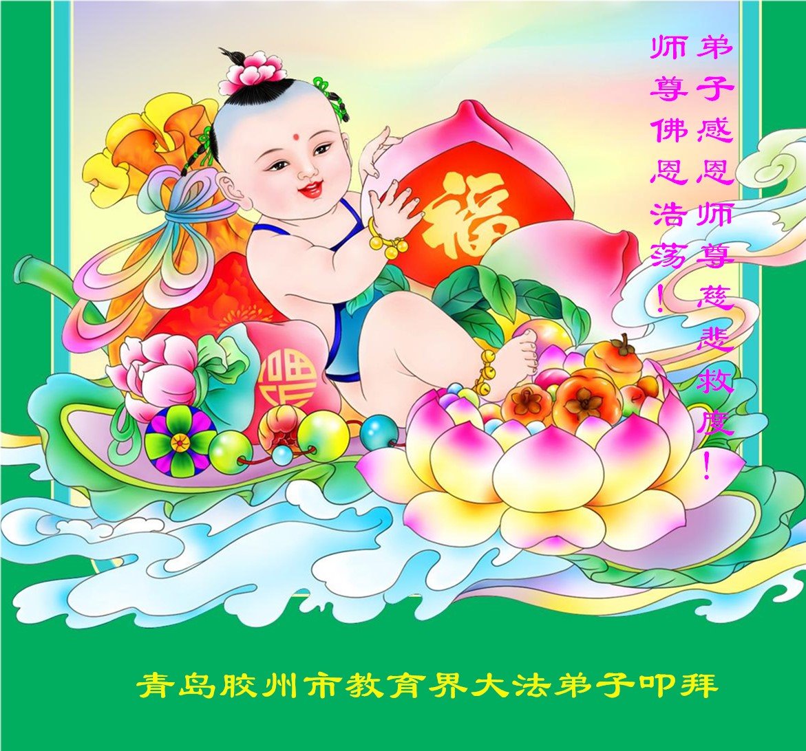 师尊伟大!大法伟大!弟子感恩师尊慈悲苦度!弟子一定精進实修,以报答创世主的恩典! 山东青岛胶州市教育界大法弟子叩拜 四川某高校一大法弟子恭祝慈悲伟大的师尊生日快乐!恭贺世界法轮大法日!