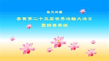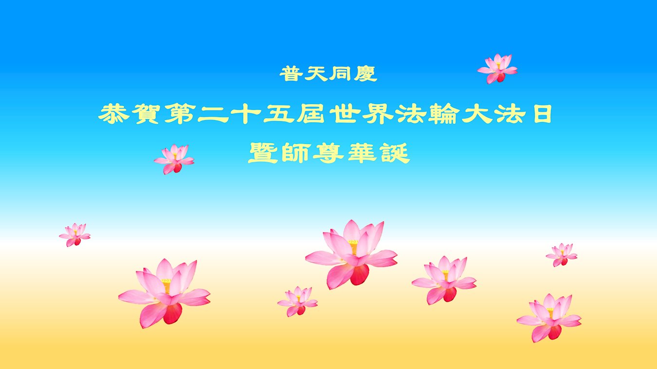 师父让您操心了!感恩师父对弟子的慈悲看护与等待!弟子会坚修到底,真修、实修,放下自我,修去色欲心,精進不怠,作师父的真修弟子,兑现对师父的承诺!在这个普天同庆的日子里,弟子恭祝师父生日快乐!期许弟子能早日成熟起来,让师父少操点心。恭贺第二十五届世界法轮大法日! 合十 广东省教育系统大法弟子恭祝慈悲伟大的师尊生日快乐!