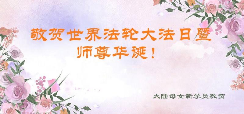 恭祝师尊生日快乐! 大陆母女新学员恭祝师父生日快乐!敬贺法轮大法日!