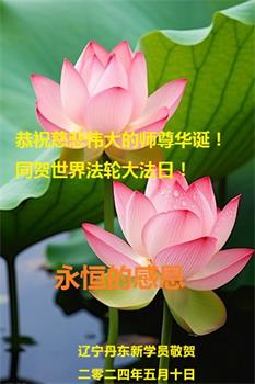 辽宁丹东一新得法弟子恭祝师父生日快乐暨庆贺世界法轮大法日!