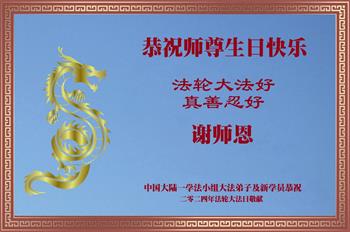 恭贺世界法轮大法日!敬祝师尊生日快乐!感恩师父的慈悲苦度! 喜得大法七年,受益匪浅,出现了很多的神迹,身心随着修炼不断的提高,升华。大法最好!师父最好!真是感恩不尽言。唯有学好法,修好自己,抓紧时间讲真相救人。 山东胜利油田新学员庆贺世界法轮大法日!恭祝师父生日快乐!