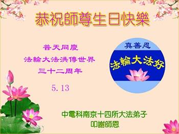 江苏省南京大法弟子恭祝师尊七十三华诞!