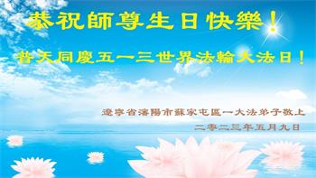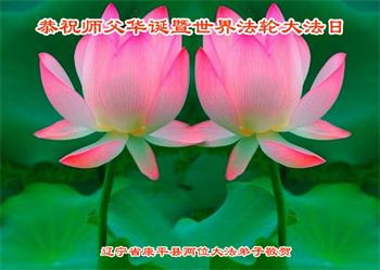 辽宁省沈阳市康平县两位大法弟子恭贺师尊华诞暨世界法轮大法日!