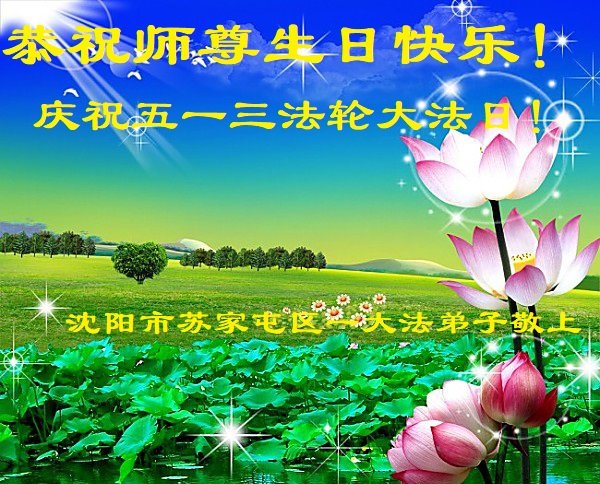 恭贺世界法轮大法日! 恭祝慈悲伟大的师尊华诞! 辽宁沈阳市沈北新区辉山地区全体大法弟子敬上 辽宁省沈阳市一独居大法弟子恭贺世界法轮大法日!