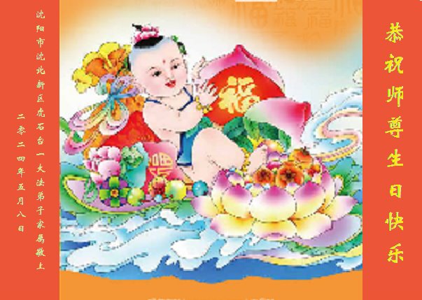 【明慧网二零二四年五月十四日】 辽宁省沈阳市沈北新区虎石台地区一大法弟子恭祝师尊生日快乐!