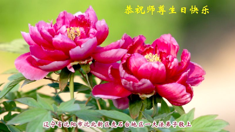辽宁省沈阳沈北夫妻大法弟子恭祝慈悲伟大的师尊生日快乐!庆祝五月十三日世界法轮大法日!