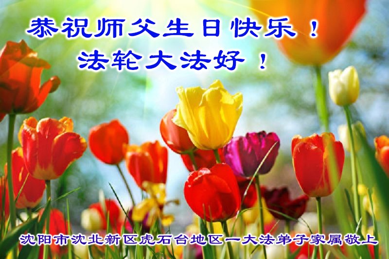 恭祝师尊生日快乐!恭贺世界法轮大法日!感恩师尊慈悲救度。 辽宁省沈阳市皇姑区一家八口大法弟子敬上 辽宁省沈阳市苏家屯区一大法弟子恭祝慈悲伟大的师尊生日快乐!