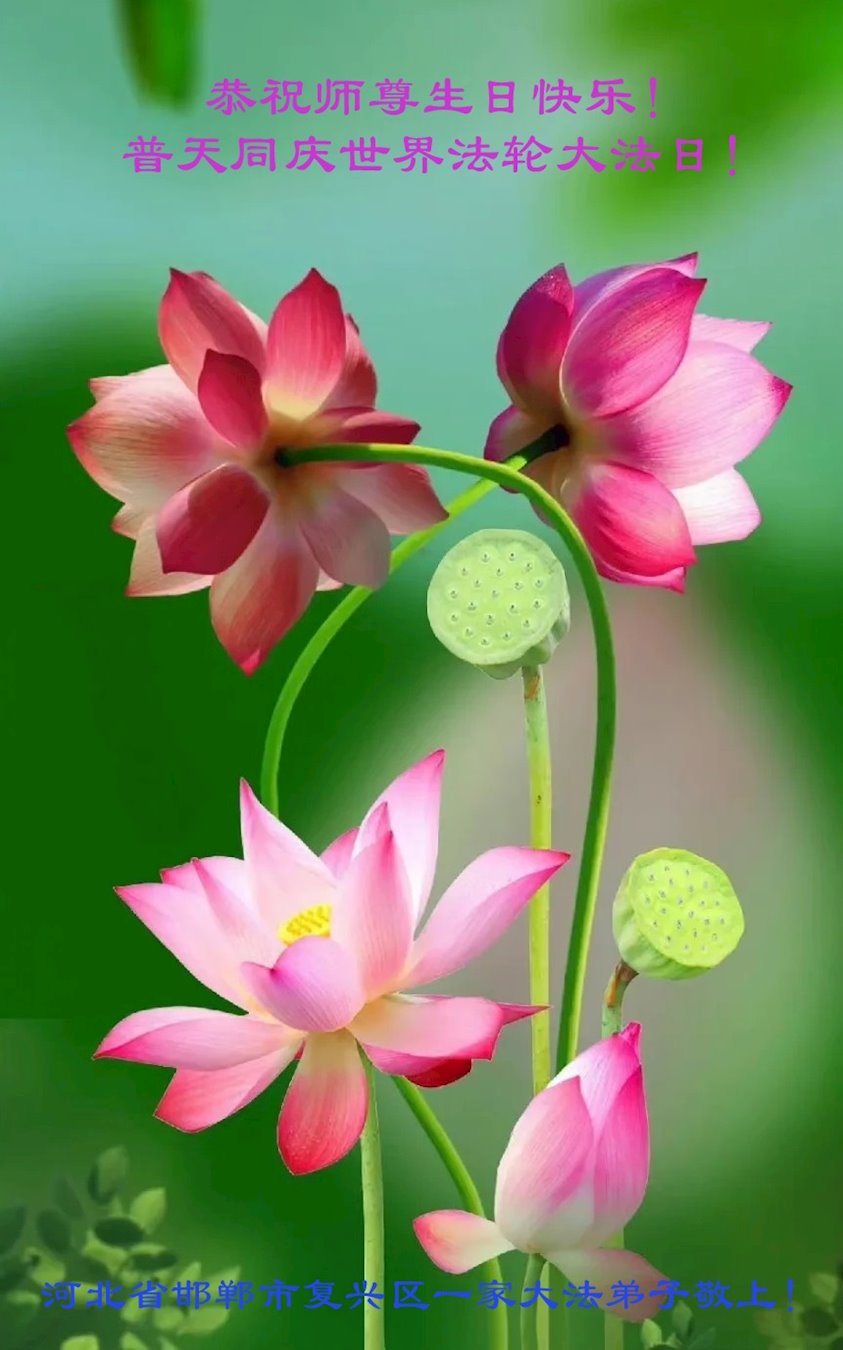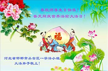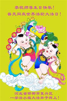 河北省邯郸市法复兴区一家大法弟子恭祝师尊生日快乐!普天同庆世界法轮大法日!