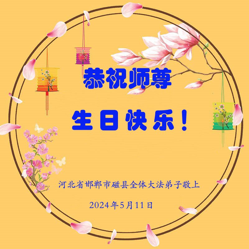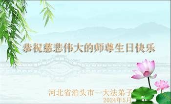 【明慧网二零二四年五月十四日】 河北省邯郸市复兴区一学法小组大法弟子恭祝师尊生日快乐!