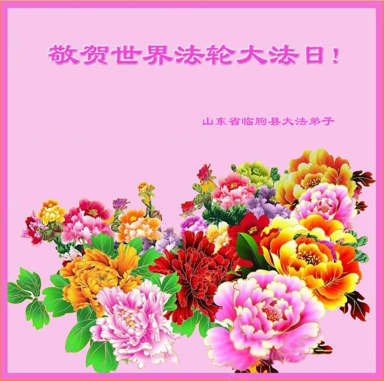 山东潍坊临朐十九位大法弟子敬上 山东省潍坊市临朐县大法弟子恭祝师尊生日快乐!同庆世界法轮大法日!