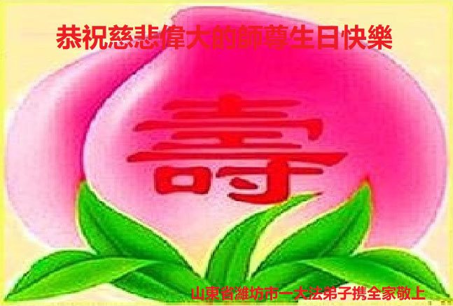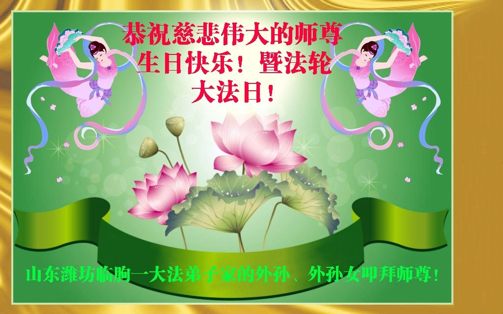 山东省潍坊市一大法弟子携全家恭祝慈悲伟大的师尊生日快乐!