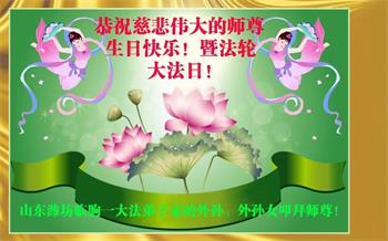 山东潍坊大法弟子恭祝师尊生日快乐!