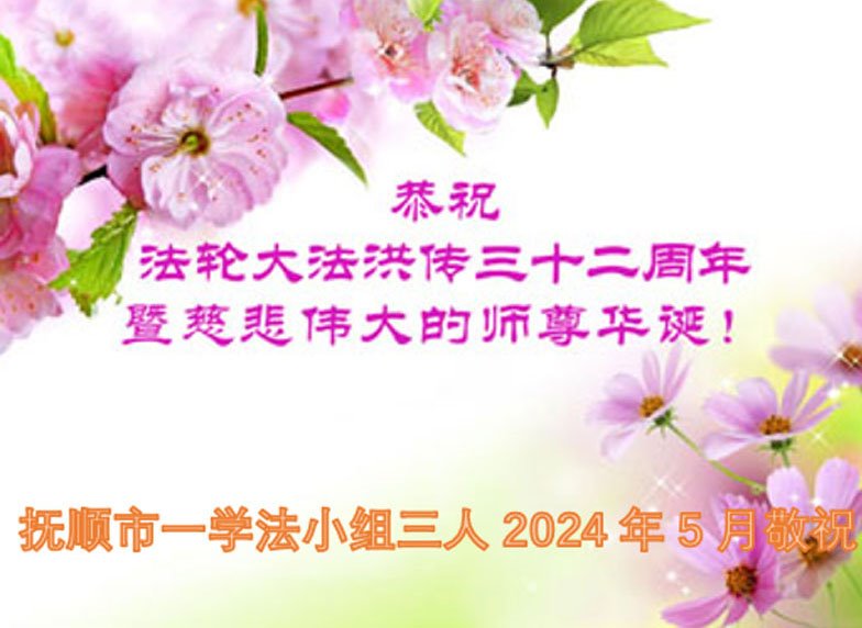 辽宁省抚顺市一名大法弟子恭贺世界法轮大法日!恭祝慈悲伟大的师尊生日快乐!